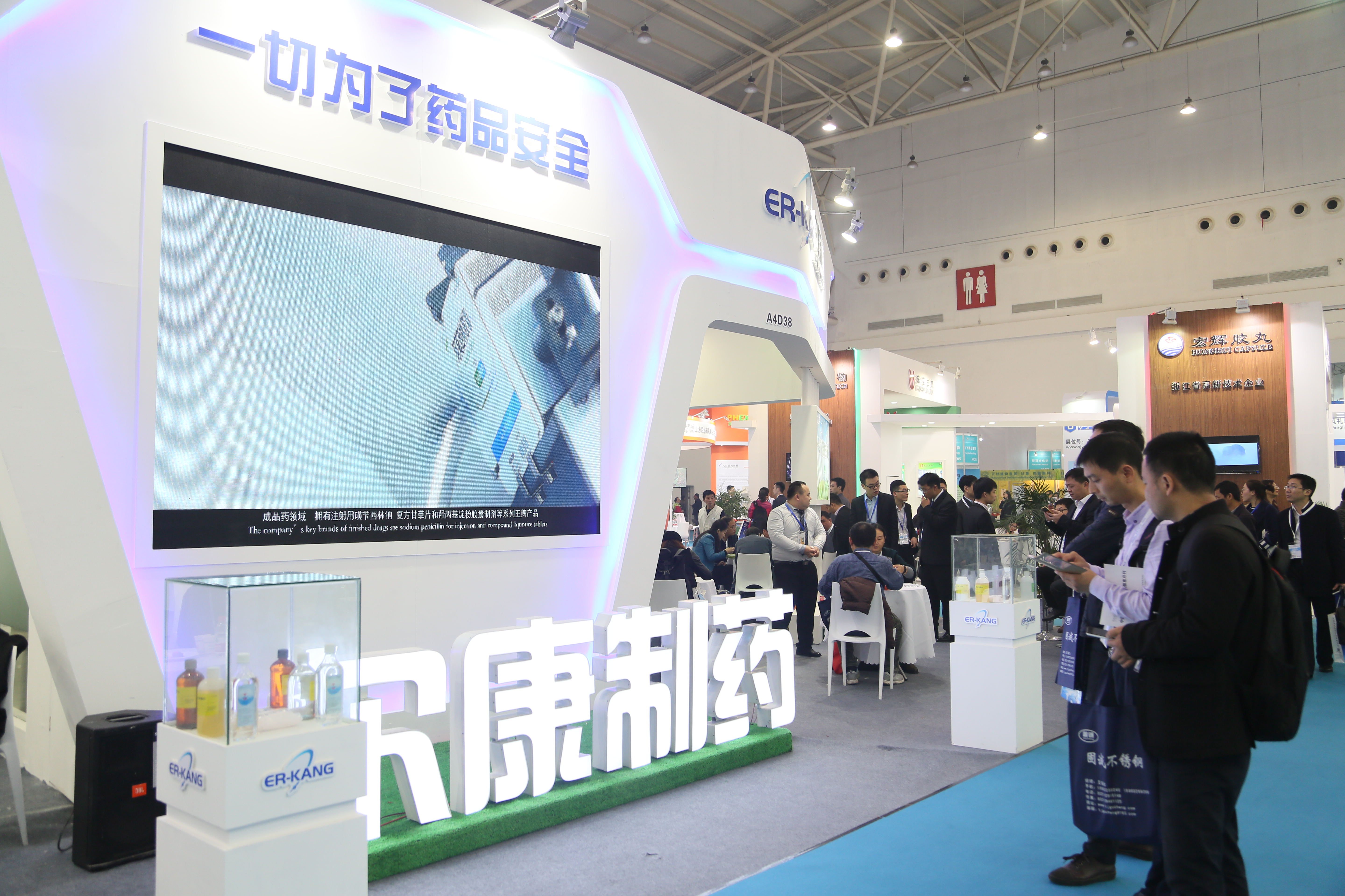 展会中,尔康制药展位位于整个展厅的核心位置,其设计风格融合了企业产品“绿色、天然、安全”的理念,展台一侧介绍公司发展和文化的巨幅LED显示屛,吸引很多客户前来展馆咨询洽谈合作事宜。展会当天,武汉市副市长邵为民先生莅临尔康制药展台,听取了尔康制药董事、集团总经理刘爱军关于公司及产品的介绍,副市长高度赞扬了尔康制药在药品安全领域取得的成果,并祝愿公司在本届展会中取得好业绩。