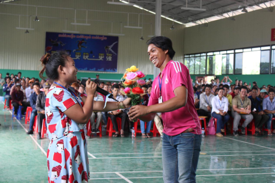 为柬埔寨歌唱选手献花