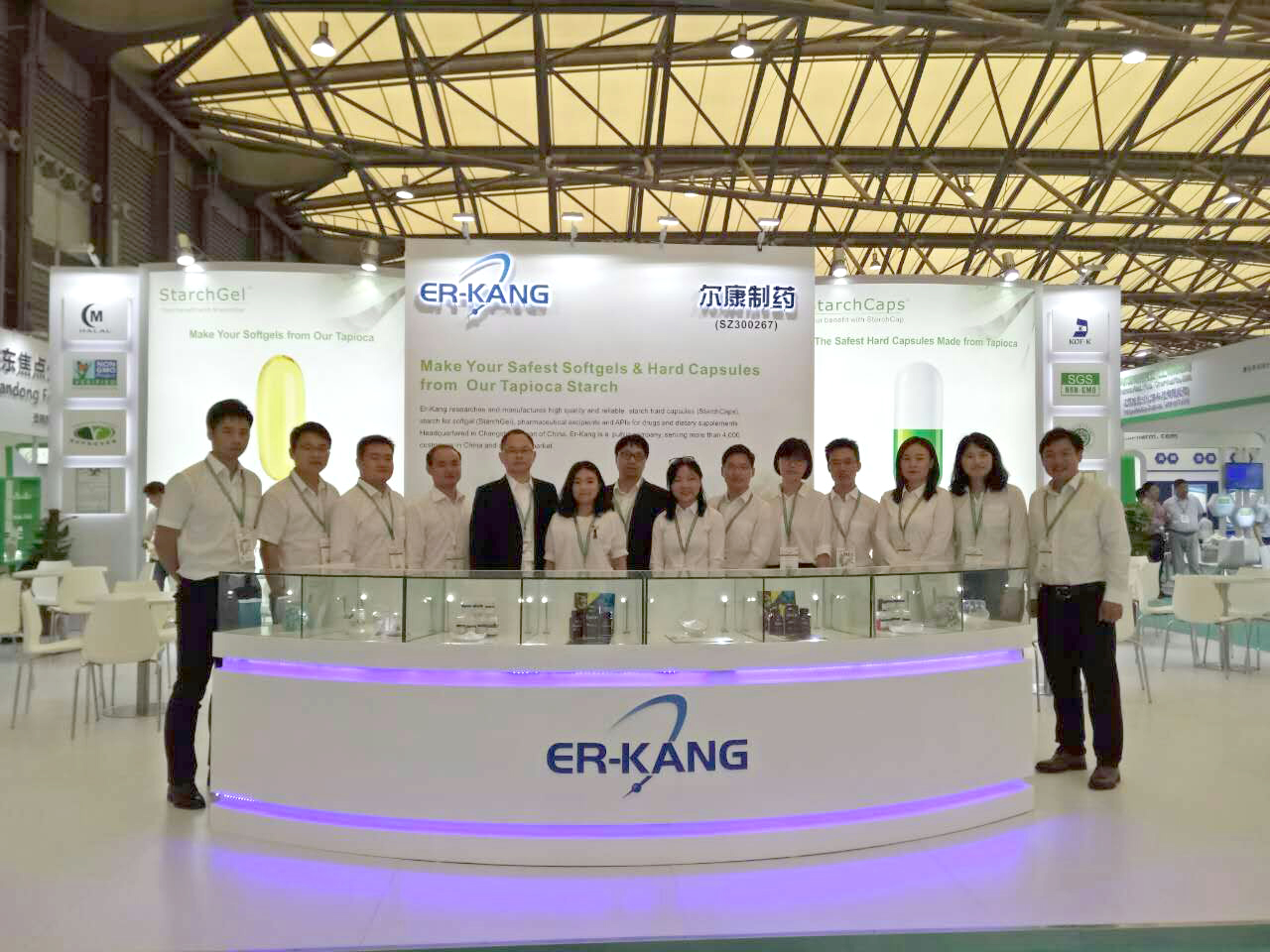 前来尔康制药展台参观的客户络绎不绝,他们都对淀粉胶囊系列产品表示出浓厚的兴趣,并有进一步合作交流的意向。一位来自穆斯林国家的客户在得知了尔康制药淀粉胶囊已经获得了素食协会认证、犹太教Kosher认证和穆斯林Halal认证等多项认证时,他惊喜地说道,淀粉胶囊符合他们国家的宗教信仰,而且又有利于人体健康,在他们国家推广会有很大的发展前景,他期待能与尔康制药进行深入合作。