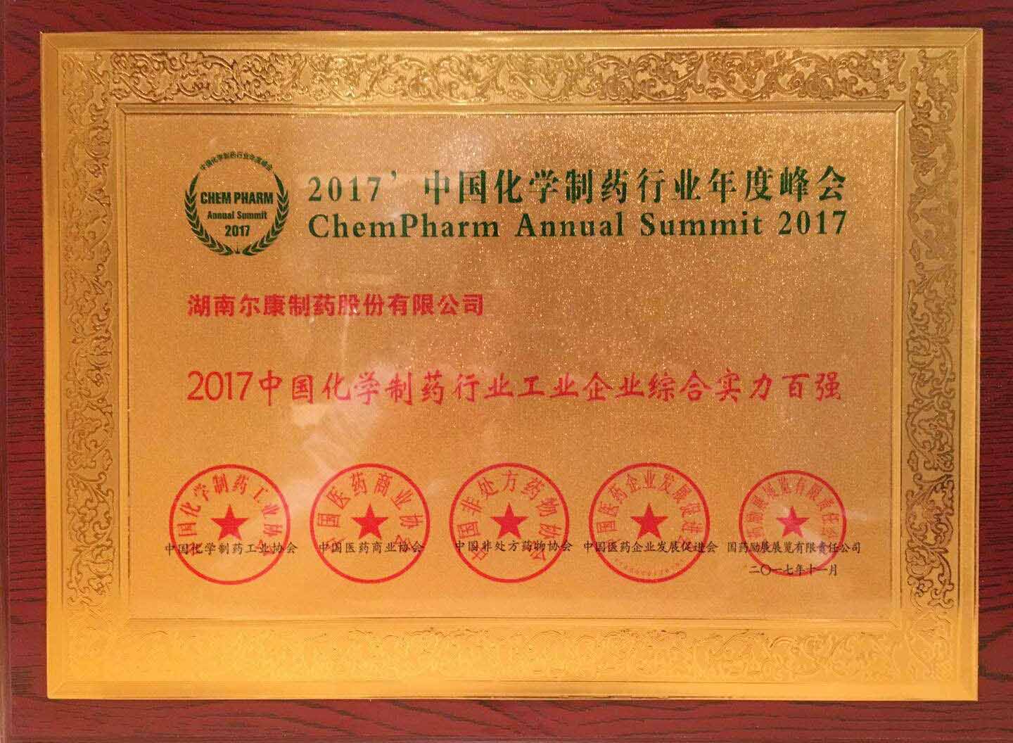 行业高度认可 荣誉见证实力——尔康制药荣获中国化药工业企业百强等多项荣誉
