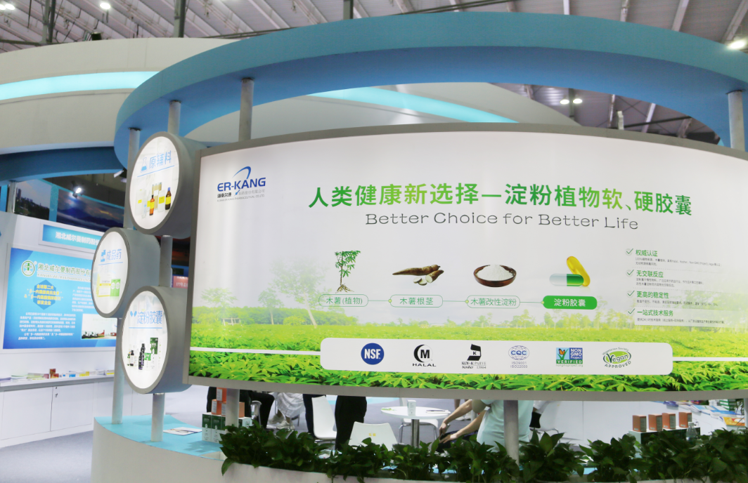 尔康制药亮相展会的淀粉植物胶囊无动物源性病毒风险,不会与药物发生交联反应,更加健康安全。相比传统胶囊,淀粉植物胶囊的全产业链更加节能、环保、低碳,更能满足了素食主义者的需求,扩大了适用人群。