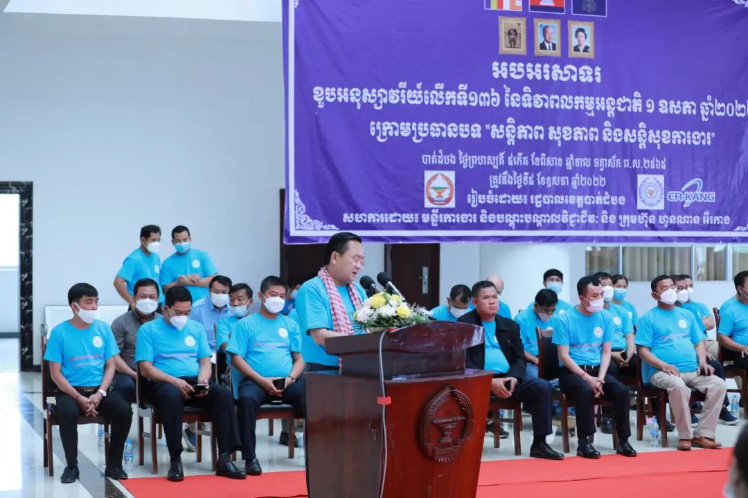 马德望省省长Sok Lu阁下宣读了柬埔寨首相洪森的“五一”祝词,并对尔康制药在柬埔寨投资表示感谢。Sok Lu省长表示,尔康制药在柬投资不仅促进了当地农、工业发展,还创造了许多就业机会,提高了当地人民的收入,马德望省政府将继续给予尔康制药大力支持,为企业提供良好的投资环境,希望能与公司进一步精诚合作,继续积极扩大与深化投资建设。