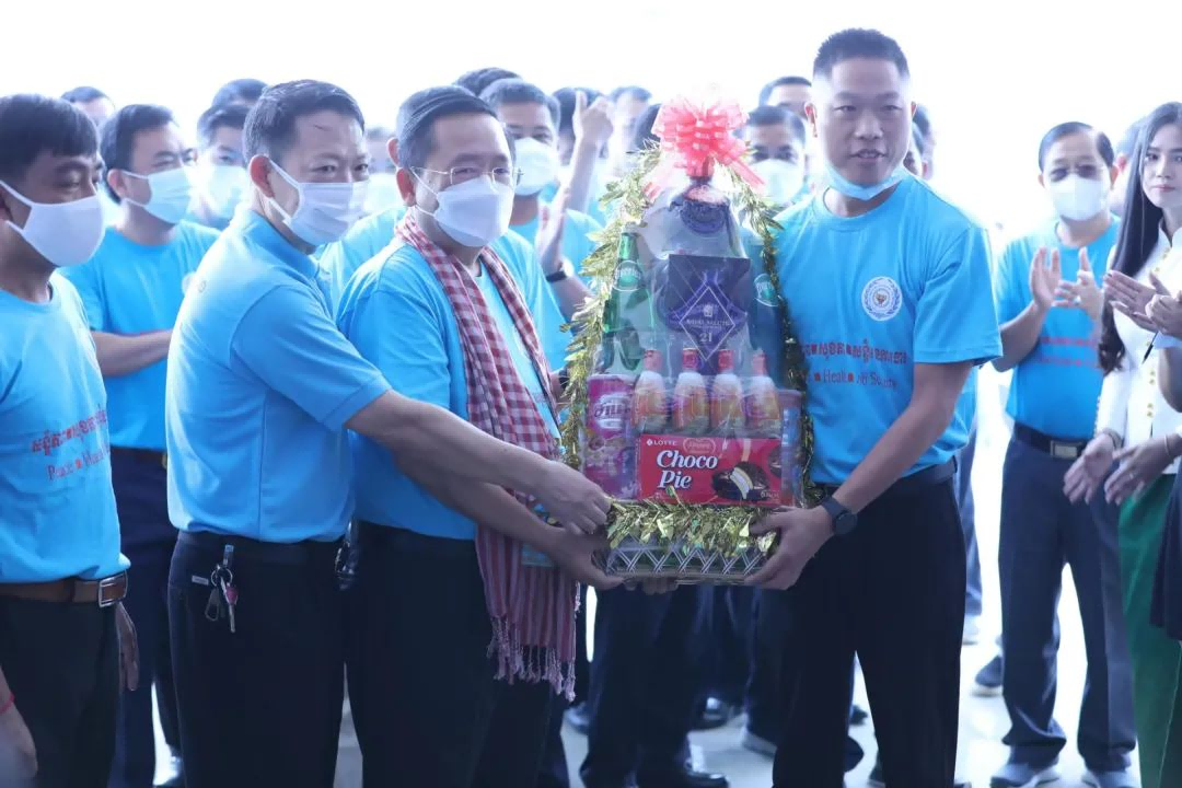 2022年5月5日,柬埔寨马德望省省长Sok Lu阁下携省政府领导、各厅局负责人莅临江南在线登录入口的柬埔寨产业园区考察,并与尔康制药柬埔寨公司员工、当地优秀学生代表共庆“五一”国际劳动节。
